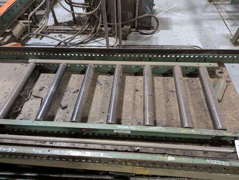 Roach power lift table with gravity conveyor, 94 in. x 33 in.