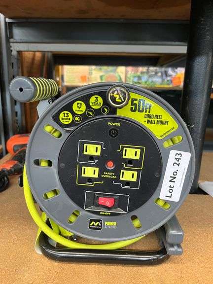 LOT 243 - NEW Master Plug 50ft Cord Reel 13AMP w/ 4 Outlets