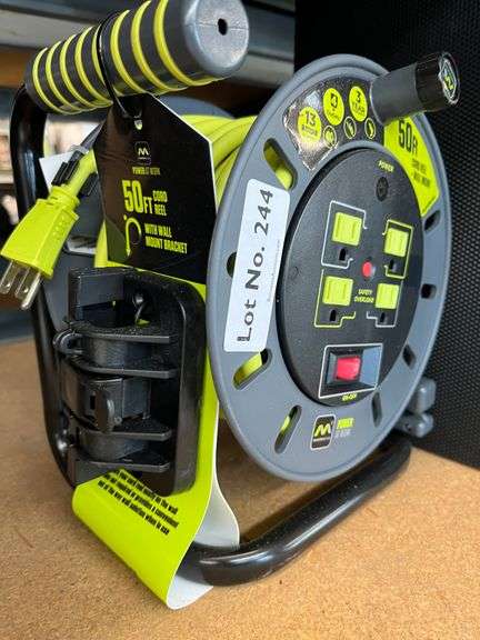 LOT 244 - NEW Master Plug 50ft Cord Reel 13AMP w/ 4 Outlets