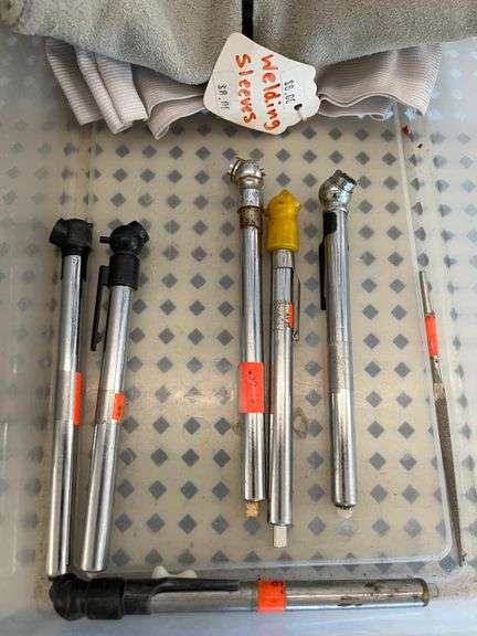 LOT 354 - Box of Pressure Gauges, Striker, 300AMP Electrode Holders, Cutting Attachment, 3-in-1 Tube Bender