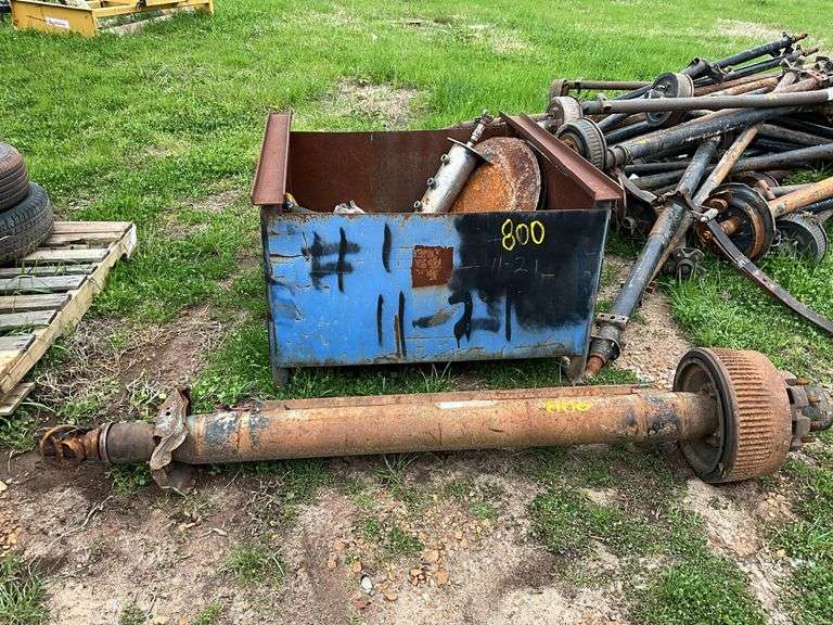 LOT 800 - Heavy Duty Axle & Box with Eye Bolts, Chokers, Etc.