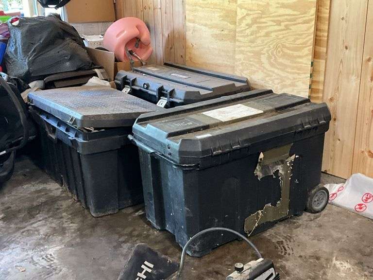 LOT 65 - 3 Large locking containers, 2 with wheels/contents