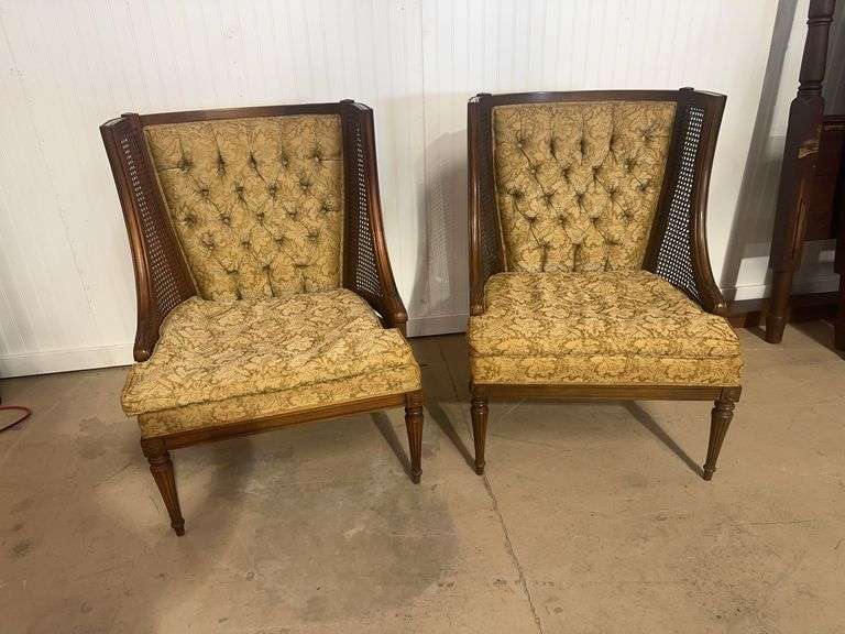 LOT - Cane Upholstered Arm Chairs