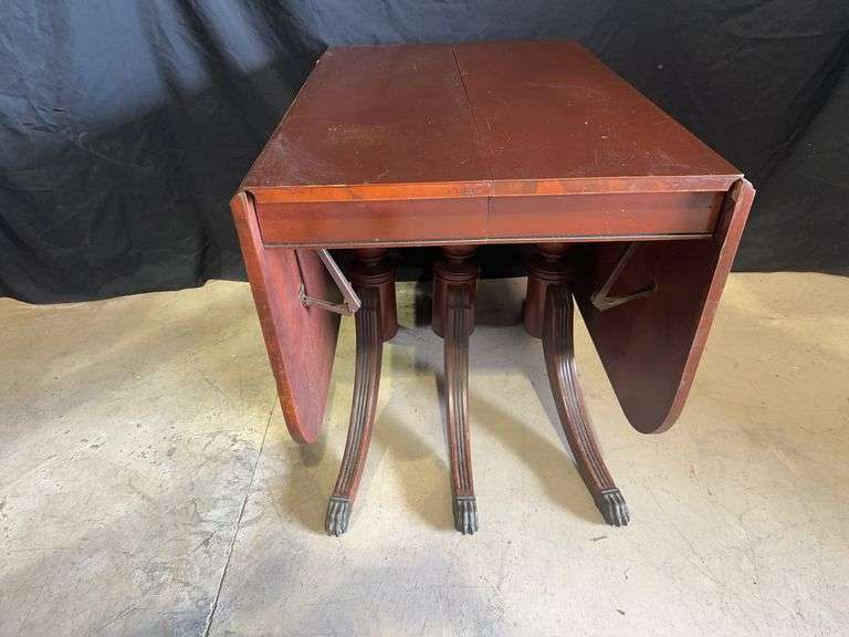 LOT - Duncan Phyfe Triple Pedestal Drop Leaf Table