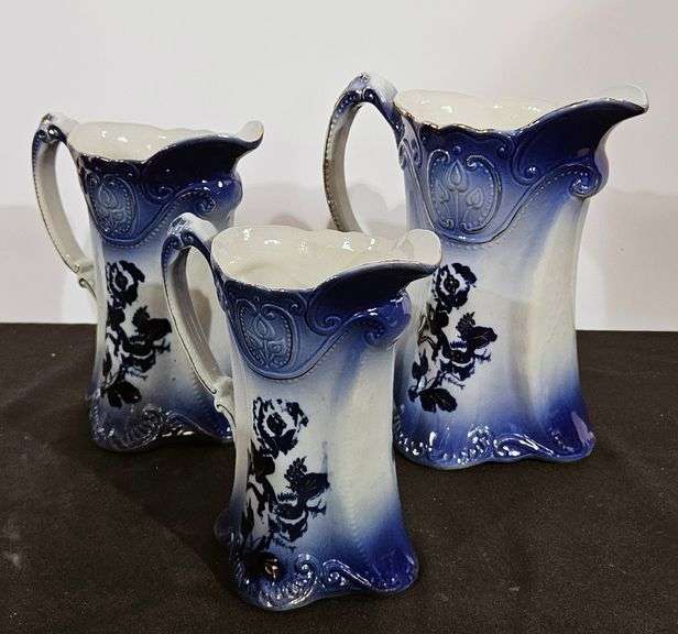 LOT 42 - 3 Flow Blue Milk Pitchers