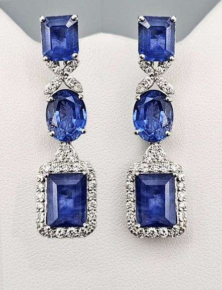 LOT 102 - Platinum 12.89 CTS Sapphire - Diamond Earrings
